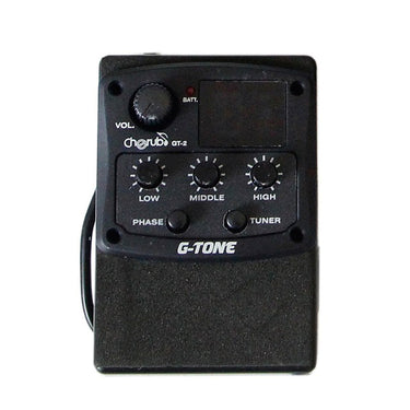 Pastilla con afinador cherub GT-3 microfono activo para guitarra/bajo electroacustico, con ecualizador de 3 bandas y afinador cromático digital integrado. Equipar ademas controles brillantes y notch con lo que puedes obtener un sonido profesional modelado a tu gusto, ademas control phase para evitar molestos feedbacks.Características: