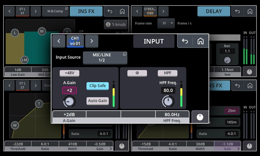 Auto Gain optimiza los volúmenes de entrada, Clip Safe evita distorsiones repentinas y Total FX te ofrece herramientas como el Ducker —que prioriza automáticamente los sonidos importantes— y un compresor multibanda para mejorar cómodamente la calidad global del audio, además de un Delay para ajustar la sincronización labial.